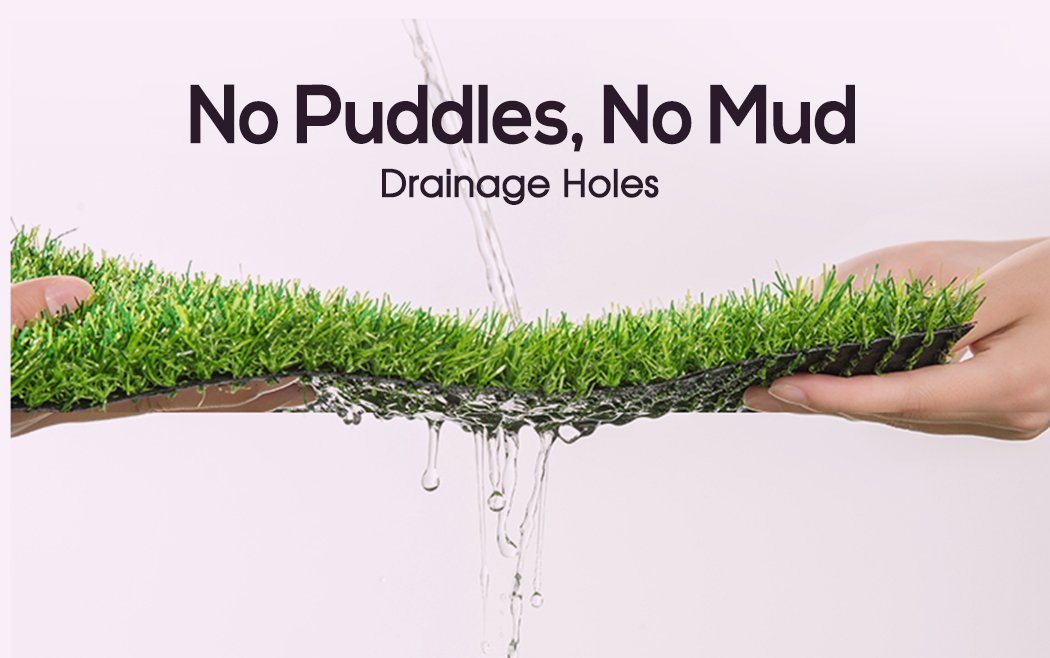The polyethylene (PE) material features excellent properties, and the backing of the turf encourages quick drainage and holds fast to the ground, even without any taping.