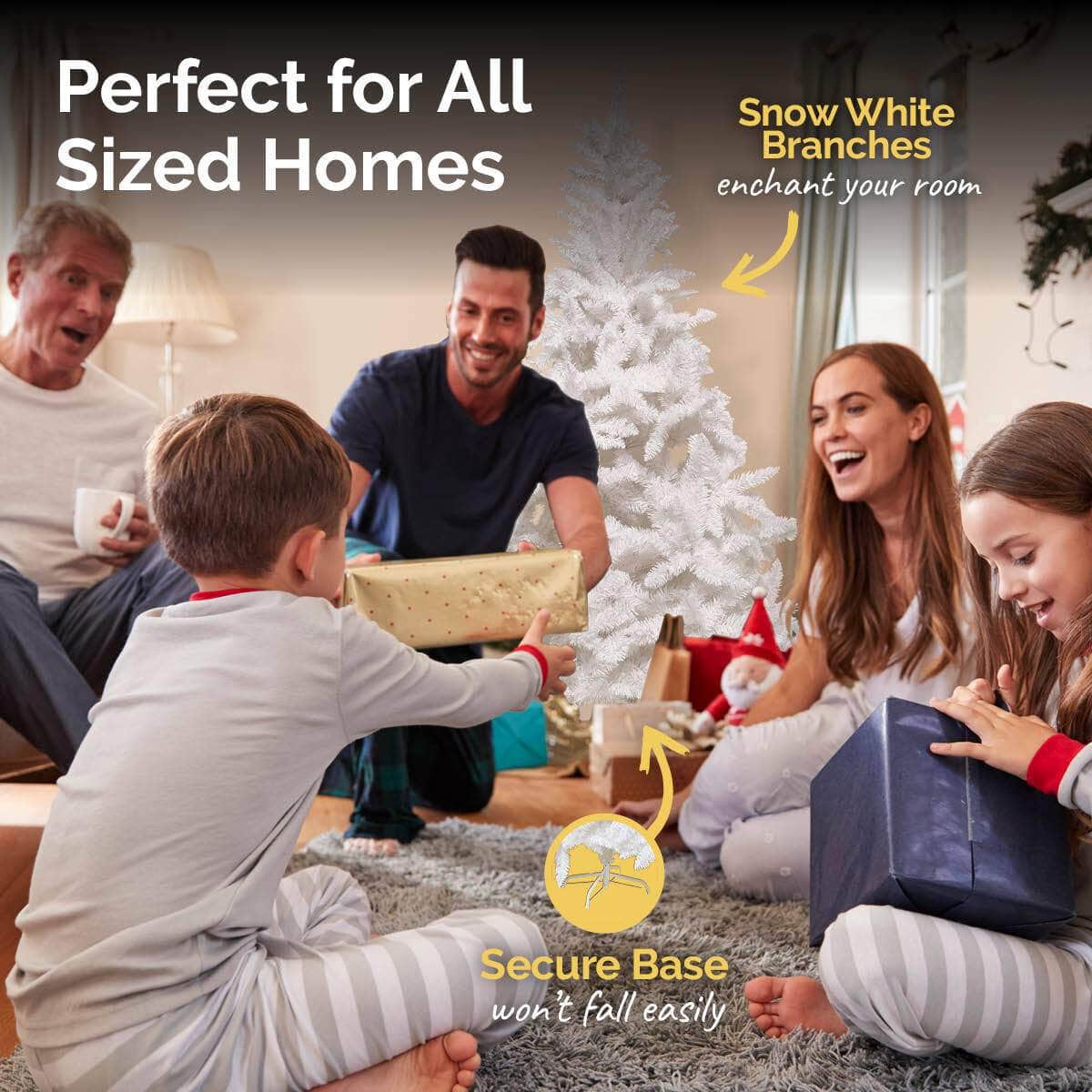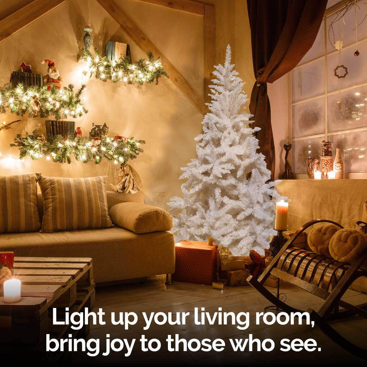 Christmas By Sas A beautiful full figured white Christmas tree that stands 1.8 metres tall. This tree has 800 pine tips. A stunning, captivating tree to have decorated and displayed for the festive season.