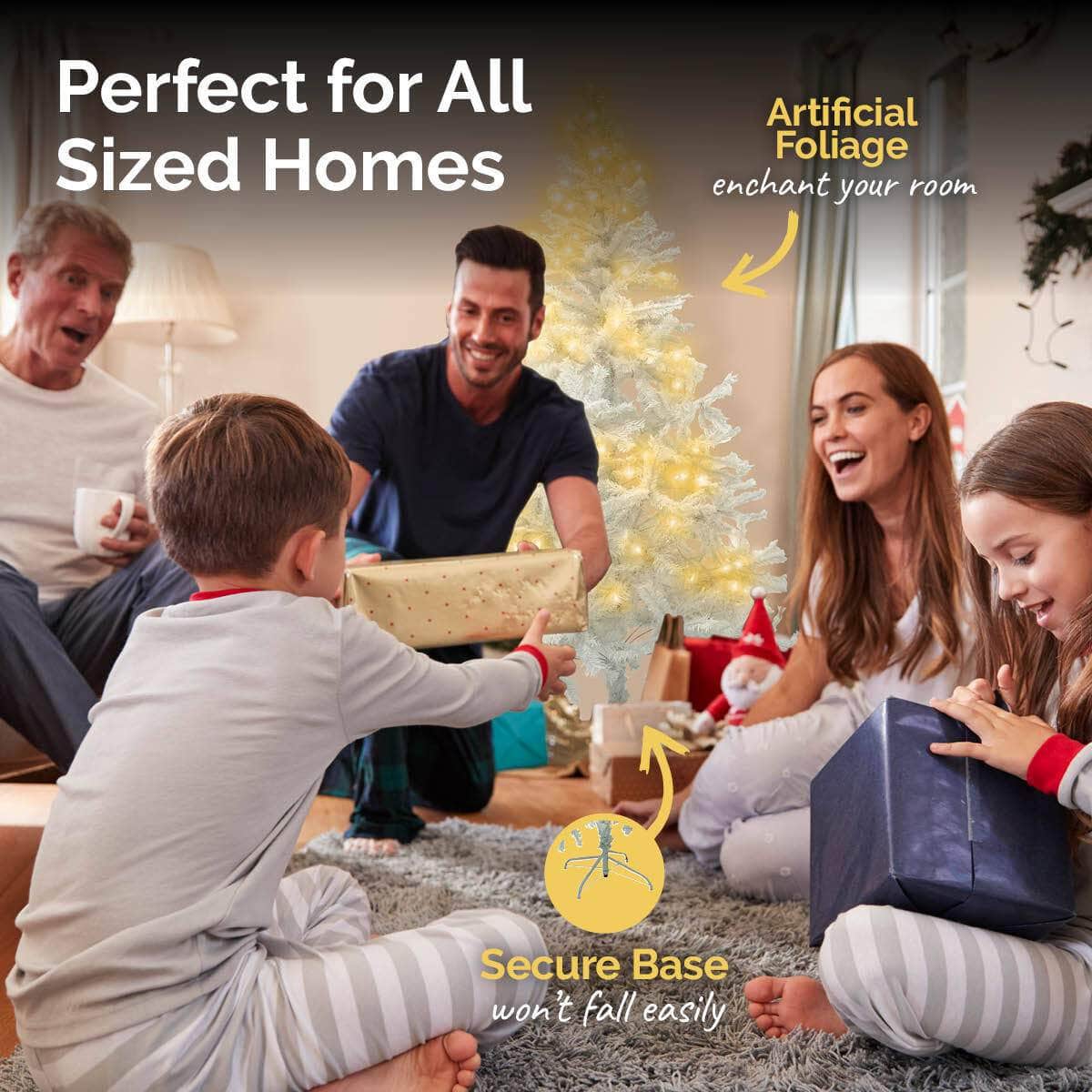 Christmas By Sas A beautiful white pine Christmas tree that stands at 1.8 metres tall. This stunning tree includes 72 warm white LED lights that has 8 functions with memory. A captivating tree to display that will twinkle and illuminate your festive evenings.
