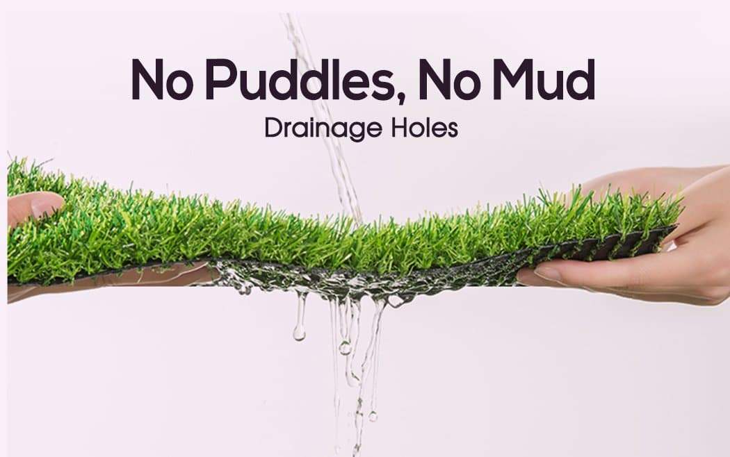 The polyethylene (PE) material features excellent properties, and the backing of the turf encourages quick drainage and holds fast to the ground, even without any taping.