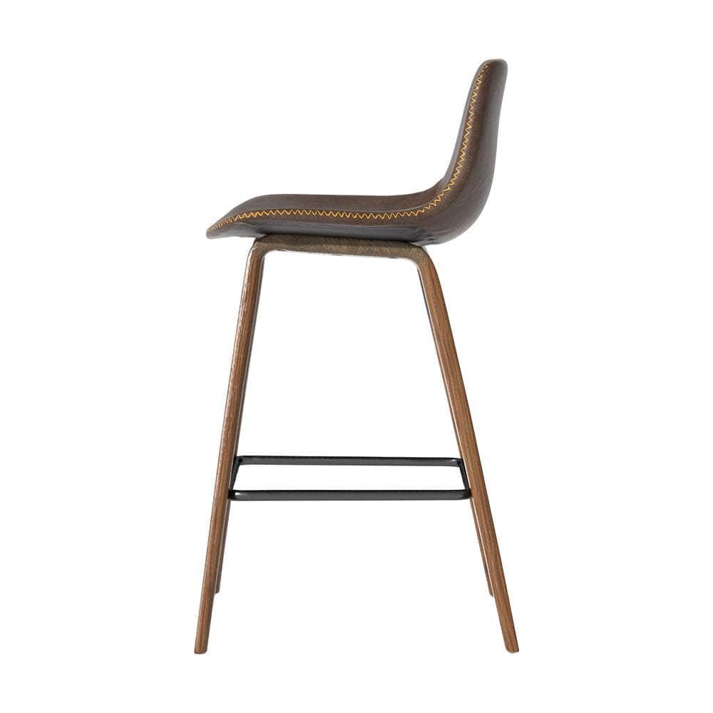 Meticulously crafted with solid wood in a stunning walnut finish for the legs, the Bentwood Bar Stool features a generous puckered faux leather integrated seat and backrest that feel comfortably smooth and look absolutely classy. The mid-height backrest also provides appreciable support while the anti-slip rubber pads at the bottom of the legs remain firm and steady even with robust use. Not least, the powder coated metal footrest rectangle lets you perch in style, feet up.