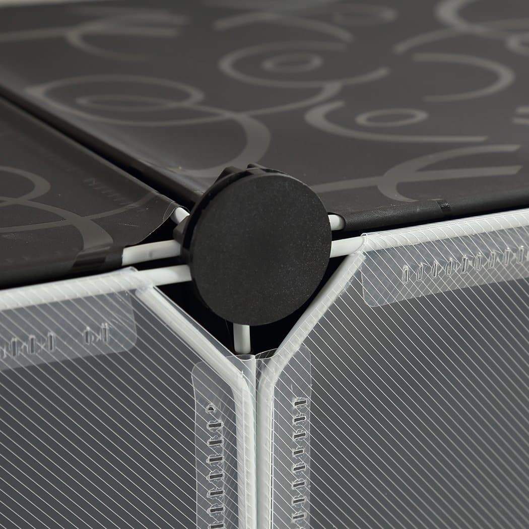 A perfect storage solution for shoe lovers. Transparent cover with adjustable tier to fit in different kind of shoes. Heavy-duty steel with PP plastic enhances its overall stability and durability. Magnetic door with knob extends the life of the entire mechanism as well as convenient access. What'more, it comes with a bonus hook rack, ready to grab your key or umbrella and go. Stackable design with ABS connector for simple assembles. Arrange your shoes in this amazing cabinet paradise.