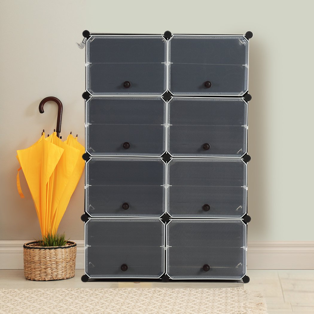 A perfect storage solution for shoe lovers. Transparent cover with adjustable tier to fit in different kind of shoes. Heavy-duty steel with PP plastic enhances its overall stability and durability. Magnetic door with knob extends the life of the entire mechanism as well as convenient access. What'more, it comes with a bonus hook rack, ready to grab your key or umbrella and go. Stackable design with ABS connector for simple assembles. Arrange your shoes in this amazing cabinet paradise.