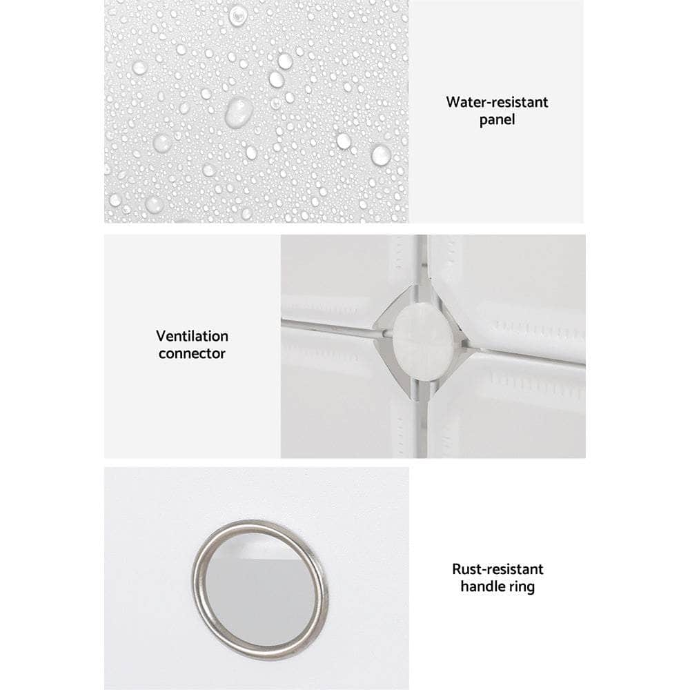 As your shoe collection grows, so should your shoe storage. An Shoe Cabinet is exactly what you need to keep loose shoes tidy and organised. Made from eco-friendly PP plastic and a strong steel frame, this multipurpose storage cabinet has a 2.5kg weight capacity per shelf, making it ideal for shoes as well as bags, coats or other items to help start your day. The micro-slit design between panels allows for easy ventilation, preventing bacteria growth, mould growth, and odours. Each panel is water-resistant with a rust-resistant handle ring for each door, making it easy to clean and maintain. Your purchase comes with accessories for two unique cabinet configurations, and shelves can be easily added or removed to store differently-sized shoes. You can even expand your shoe cabinet to fit your current storage requirements: simply visit our store and purchase additional units to multiply and expand. With so many options at your disposal, it's easy to see why the Shoe Cabinet is the right choice for your entryway, bedroom, or walk-in wardrobe.