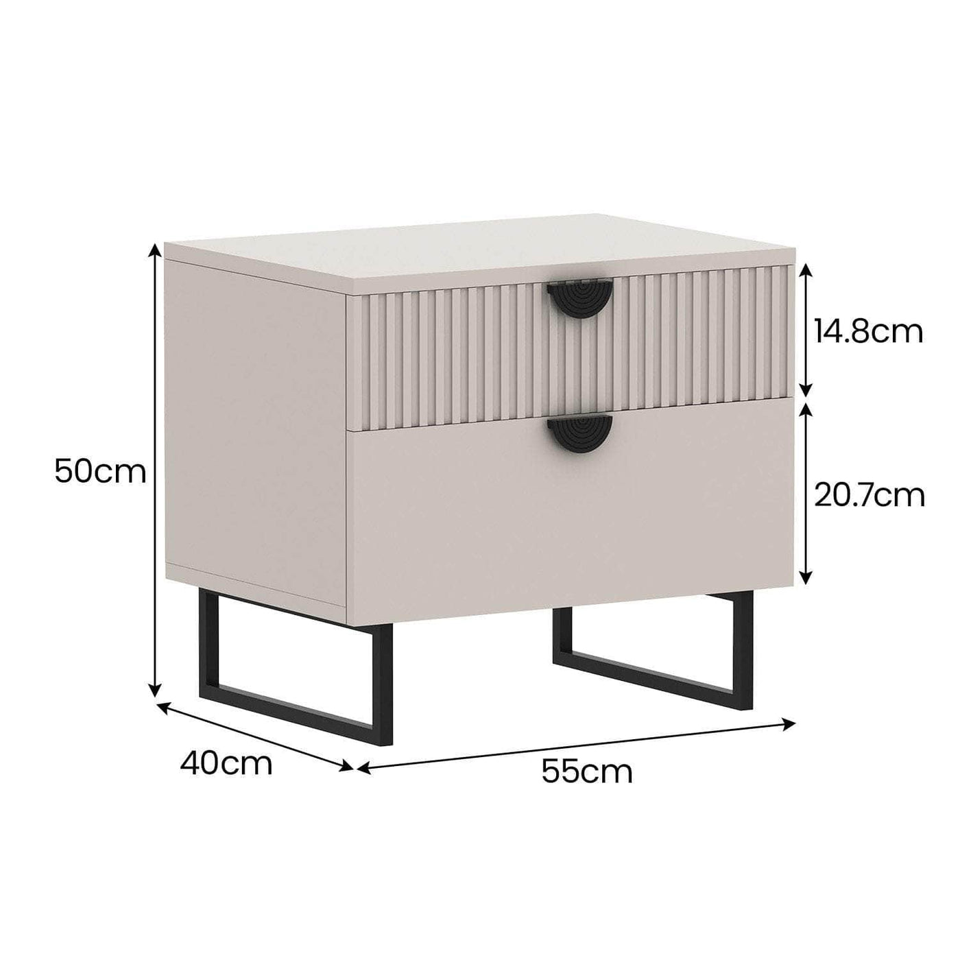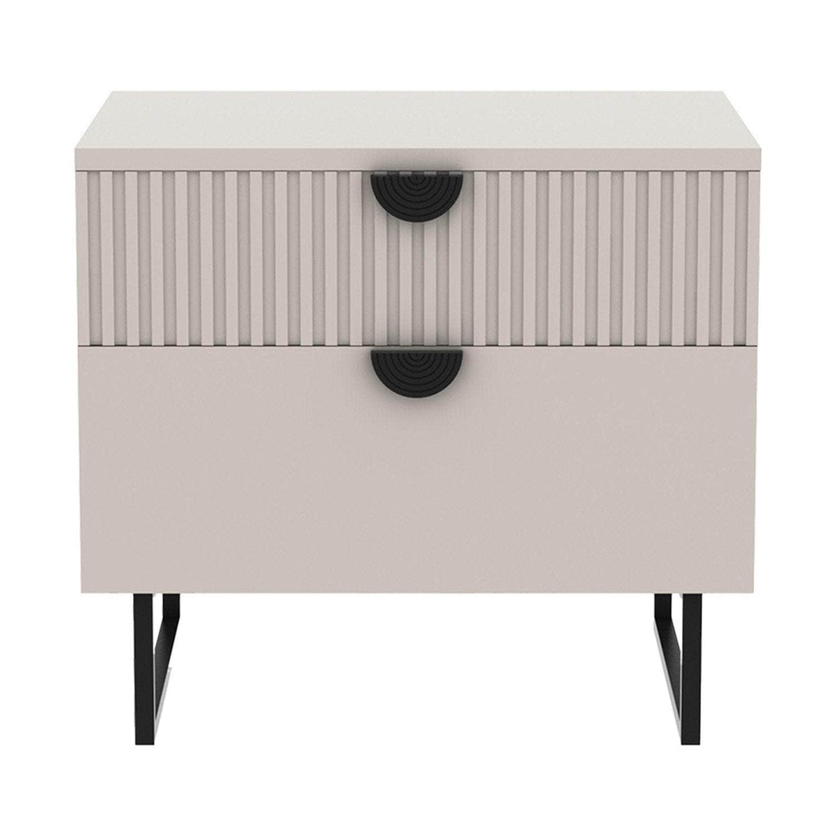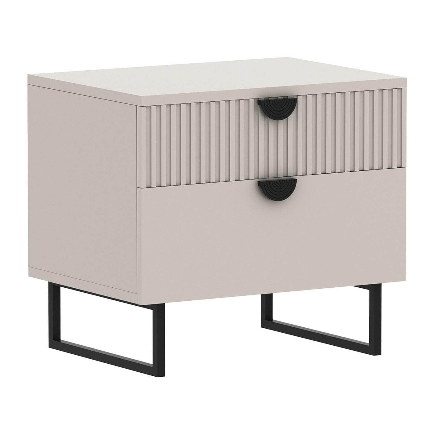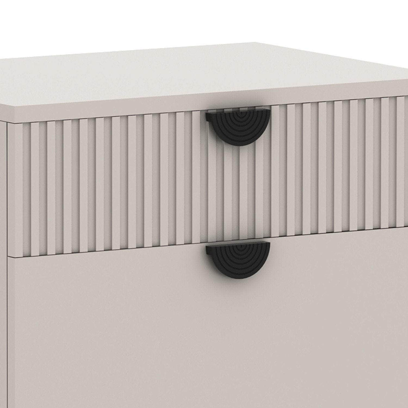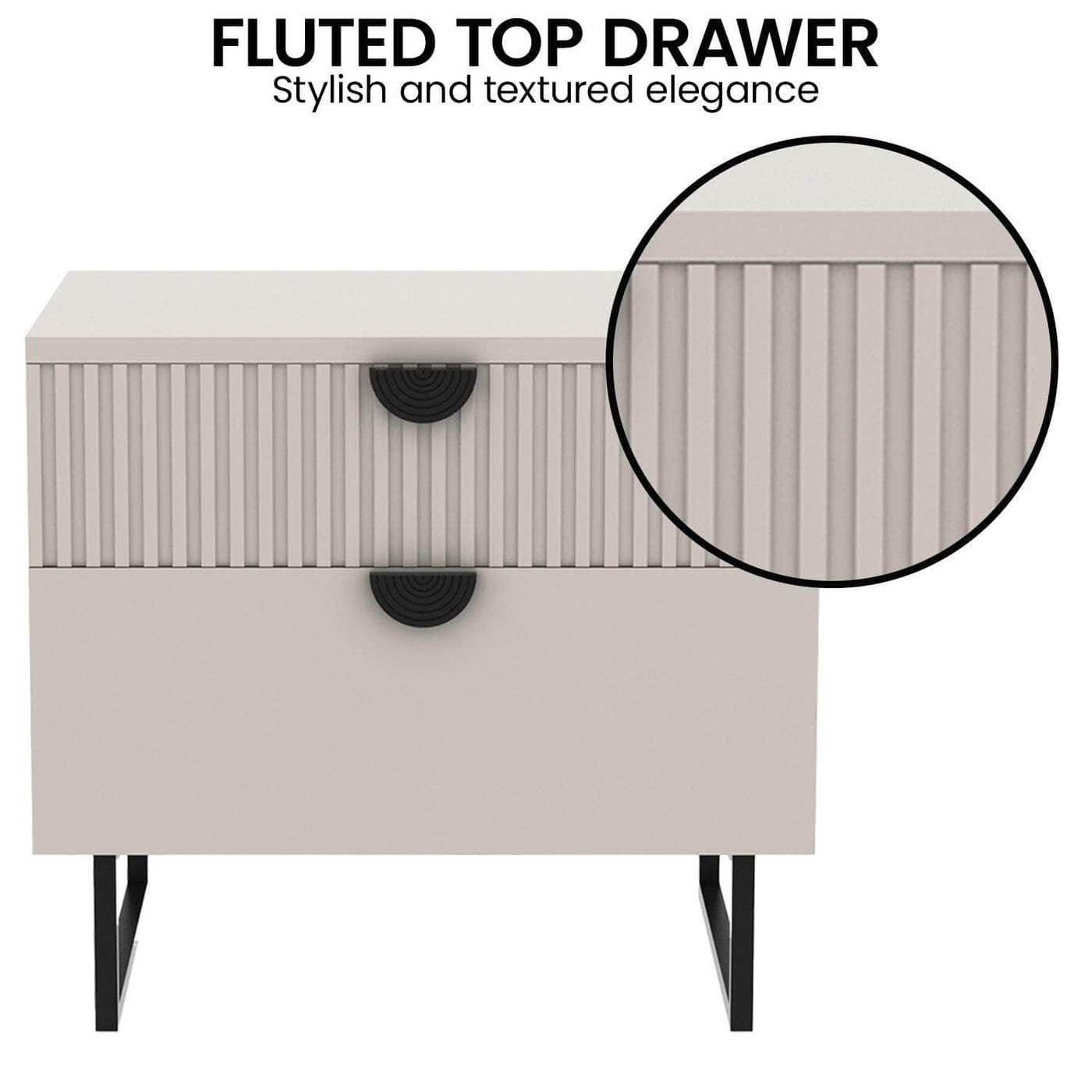 Give your room a modern flair with the stylish addition of the Tessa bedside table. It features a beautiful fluted top drawer that adds a nice touch of texture. The half-moon handles provide easy access and bring a cool, contemporary feel to the piece. Plus, the sturdy rectangular metal legs not only give a strong foundation but also present a geometric edge. This table is perfect for creating a chic yet practical bedroom, blending classic charm with smart design for your comfort and convenience.