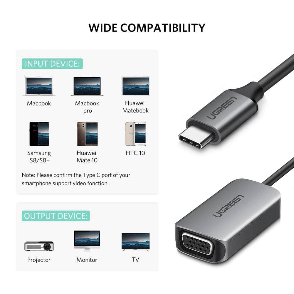 UGREEN USB C to VGA Adapter, Aluminum Type C Thunderbolt 3 Adapter for Macbook Pro 2017 2016, New MackBook 2016, Dell XPS 15 13, HP Spectre Envy, Google PixelBook, Lenovo, ASUS, Samsung S9 S8 Note8, etc.