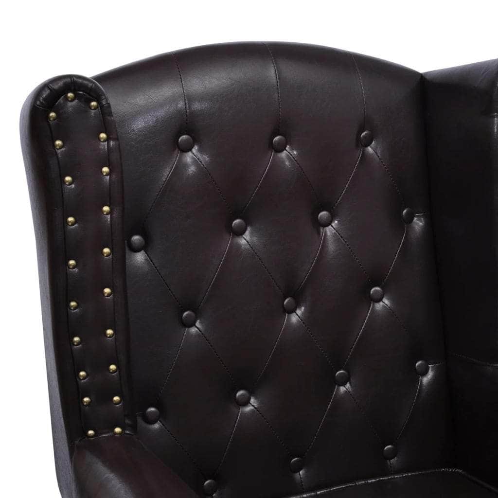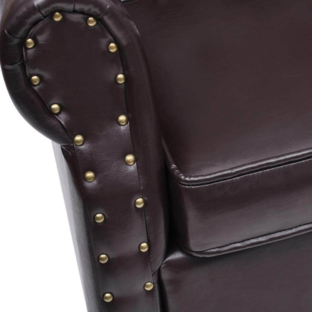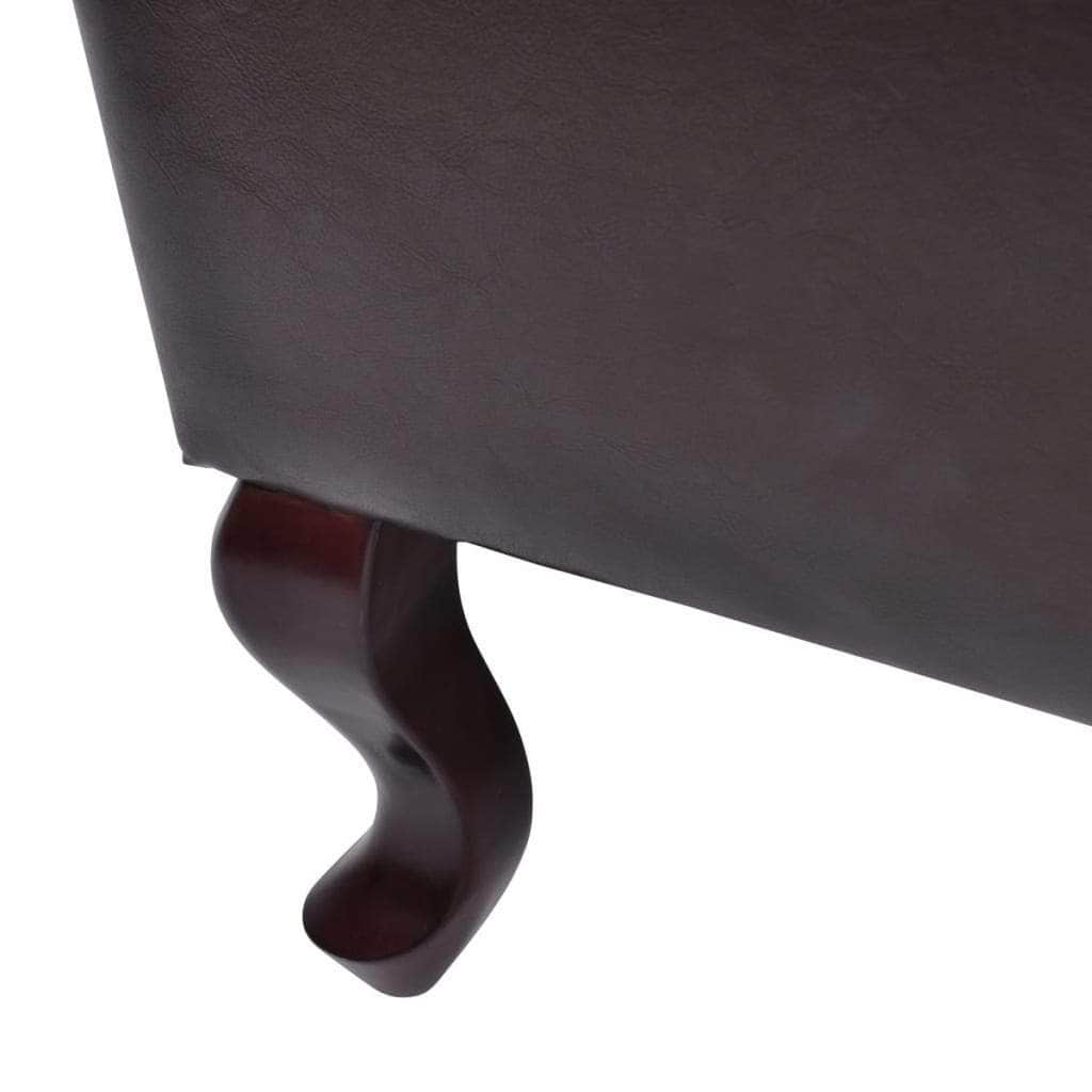 Relaxing on this antique brown finish Chesterfield chair is a pure pleasure and comfort. The elegant design can fit into any setting of the household. The typical buttoning and polished wooden feet match your classic chesterfield furniture. This chair is draped with beautiful, high-quality, easy-to-clean artificial leather. It is thickly upholstered with durable material for your comfort. Solid wood legs contribute to the sturdy construction.
