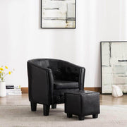What can be better than relaxing in a comfortable armchair at the end of a busy day? Our sofa chair with footstool will be the first thing you want to head for after a long day. The tub chair is upholstered in faux leather, which makes it easy to clean. The solid construction ensures its long-term use. Thanks to the thickly padded seat and backrest, the couch is the perfect place for you to sit comfortably and fully relax while reading, chatting, watching TV or listening to music. Additionally, the footrest will also bring you extra sitting comfort. Delivery includes 1 armchair and 1 footrest.