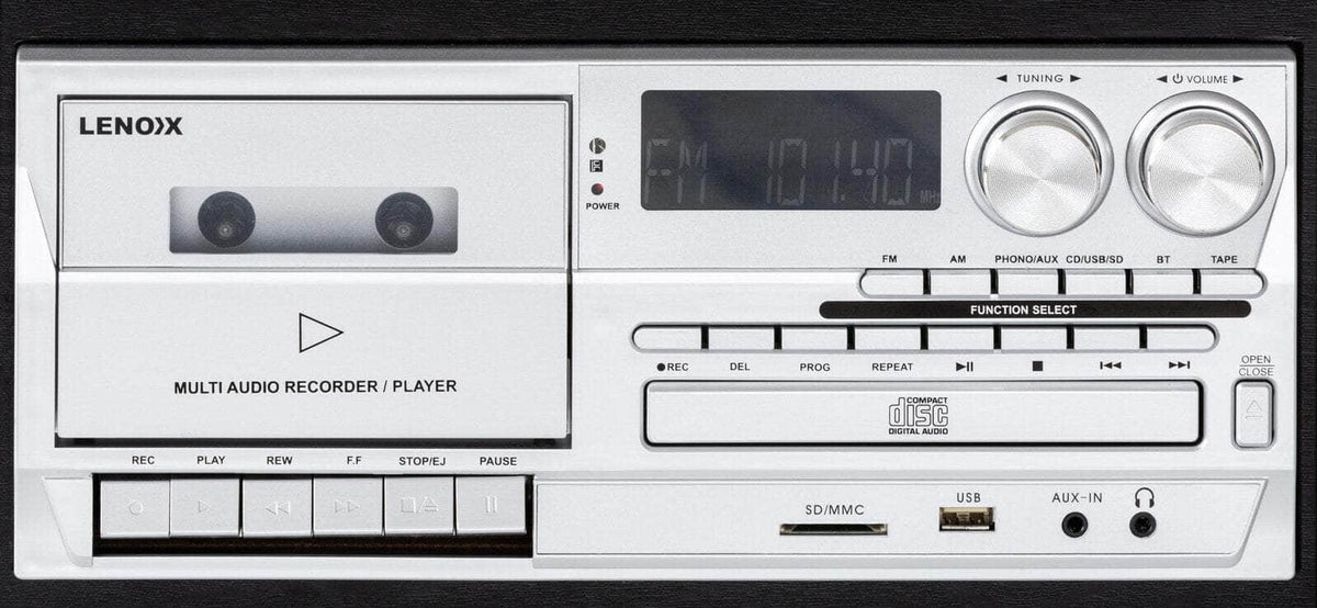 - Record to cassette tape from USB, SD/MMC, Bluetooth, aux-in, CD, turntable vinyl or AM/FM radio