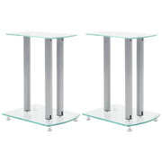 This pair of Speaker Stands has been made to compliment monitor speakers. The top and base plates of the stand are made of safety glass. There are three aluminum pillars on each Stand, which will provide sturdy support to the speakers. The modern elegant design blends well with any contemporary home environment. The four round spikes under the base plate help to reduce vibration and prevent your carpet or wood floor from being flattened or damaged by the base plate. They also make lifting of the stand easier. Delivery includes two speaker stands.