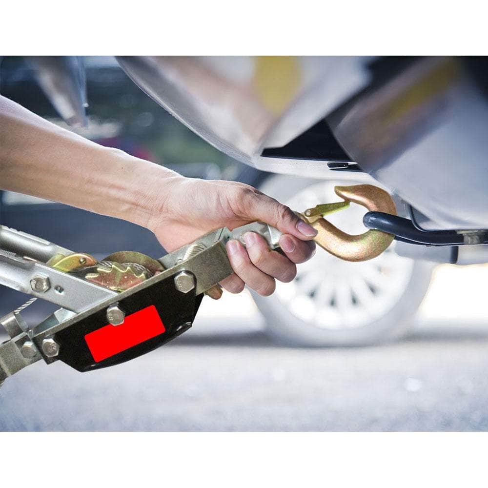 Made from heavy gauge flat stock steel, the Giantz hand puller winch provides 4000kg of pulling power. Featuring sturdy aircraft grade steel cable and double gear ratcheting gearbox for superior handling and maximum performance.