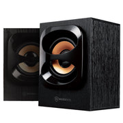 Multimedia speakers fill rich, balanced stereo and clear acoustics for a room-filling sound. The round knob on the right side can adjust the volume up and down. The small computer speakers with powerful audio are a ideal for games, music, movies and any multimedia content