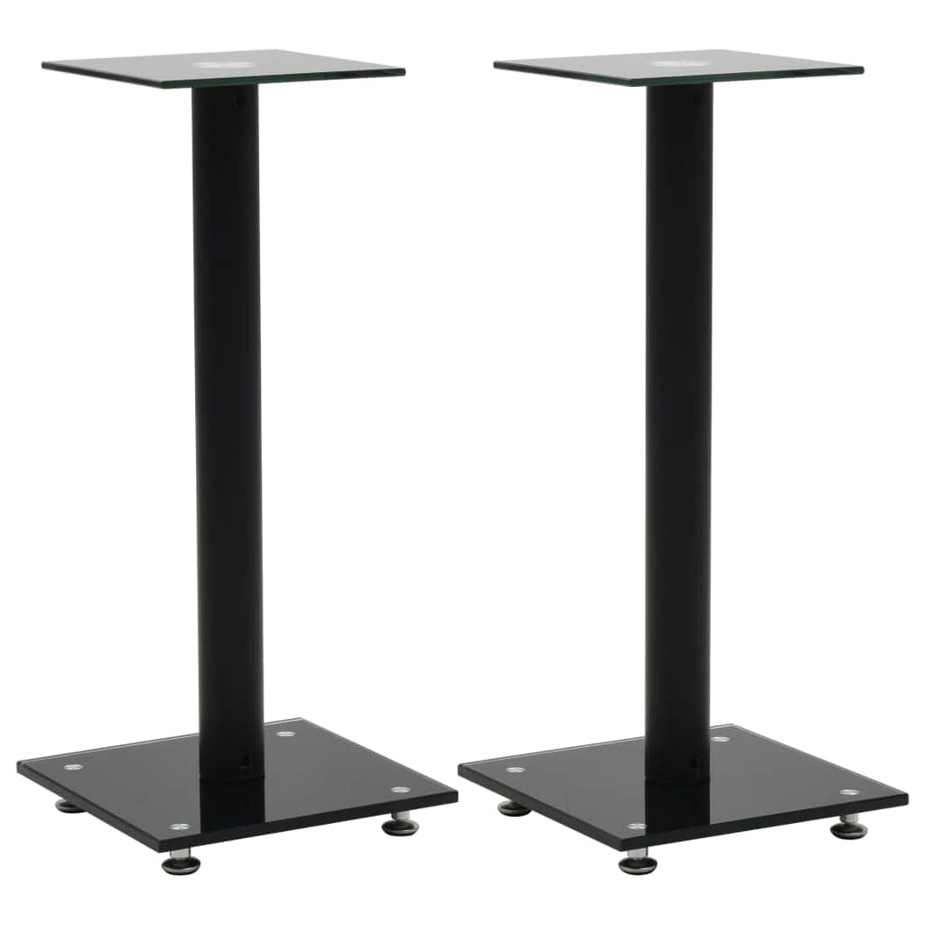 Enjoy the quality of your free standing sound system with our pair of speaker stands. Its modern design combines glass and aluminum and will fit any interior. Thanks to the heavy-duty tempered glass surface and the sturdy pillar, your speakers will get the needed support. The four skidproof plastic pads under the base plate help to reduce vibration and prevent your carpet or wood floor from being damaged by the base plate. Delivery includes 2 speaker stands.