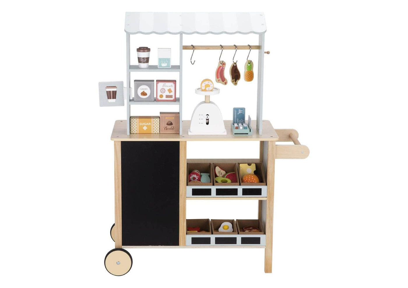 Tooky's Wooden Grocery Store offers an enchanting and safe play experience for children. Crafted with meticulous care, the vibrant and non-toxic paint used on the wooden surfaces ensures a secure play environment. The store is skillfully constructed using high-quality plywood and MDF, ensuring durability and longevity. The well-finished design not only enhances the aesthetic appeal but also guarantees a smooth and splinter-free play surface. With its lovely array of colours, Tooky's Grocery Store sparks creativity and imagination in young minds, making playtime not only entertaining but also educational. Dive into a world of fun where children can explore, pretend, and learn, all while surrounded by the charm and safety of Tooky's Wooden Grocery Store.