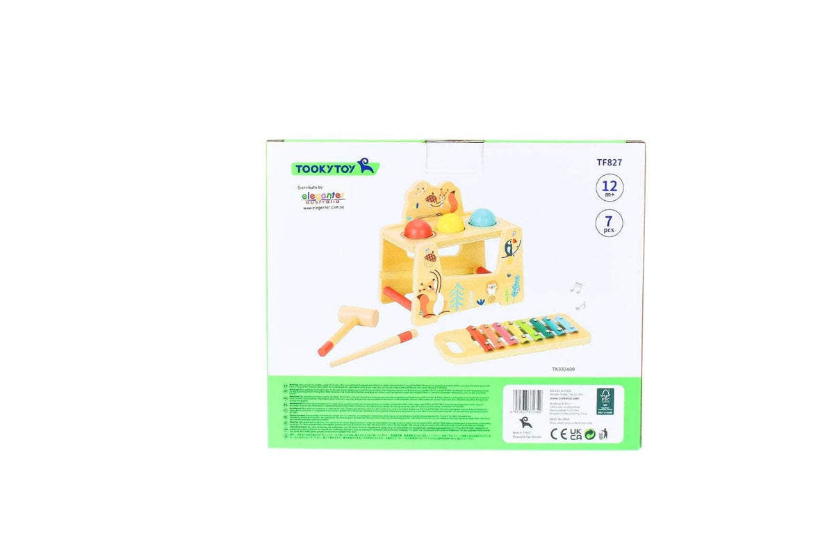 Step right up to the magical world of music and merriment with the Tooky Toy Pound and Tap Ball Bench with Xylophone. This delightful playset invites little ones to unleash their inner maestros as they pound the colourful balls into the bench with joy. Each tap brings a cheerful thud, transforming playtime into a symphony of giggles. But wait, there is more, simply pull out the vibrant xylophone hiding beneath. With its rainbow of notes, this charming xylophone is ready for mini concerts that will make every stuffed animal in the room tap their paws in rhythm. Adorned with cute animal illustrations, the bench is not just a toy, it is a whimsical wonderland that sparks imagination and creativity. Perfect for tiny hands, this enchanting set encourages hand eye coordination and musical exploration, making learning oh so fun. So grab your mallet, gather your furry friends, and let the pounding and tapping begin. The Tooky Toy Pound and Tap Ball Bench with Xylophone is sure to fill every playtime with joy, laughter, and a sprinkle of musical magic.