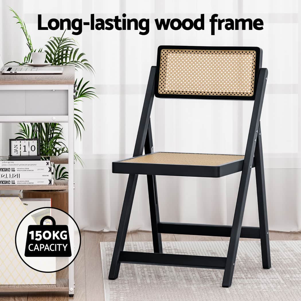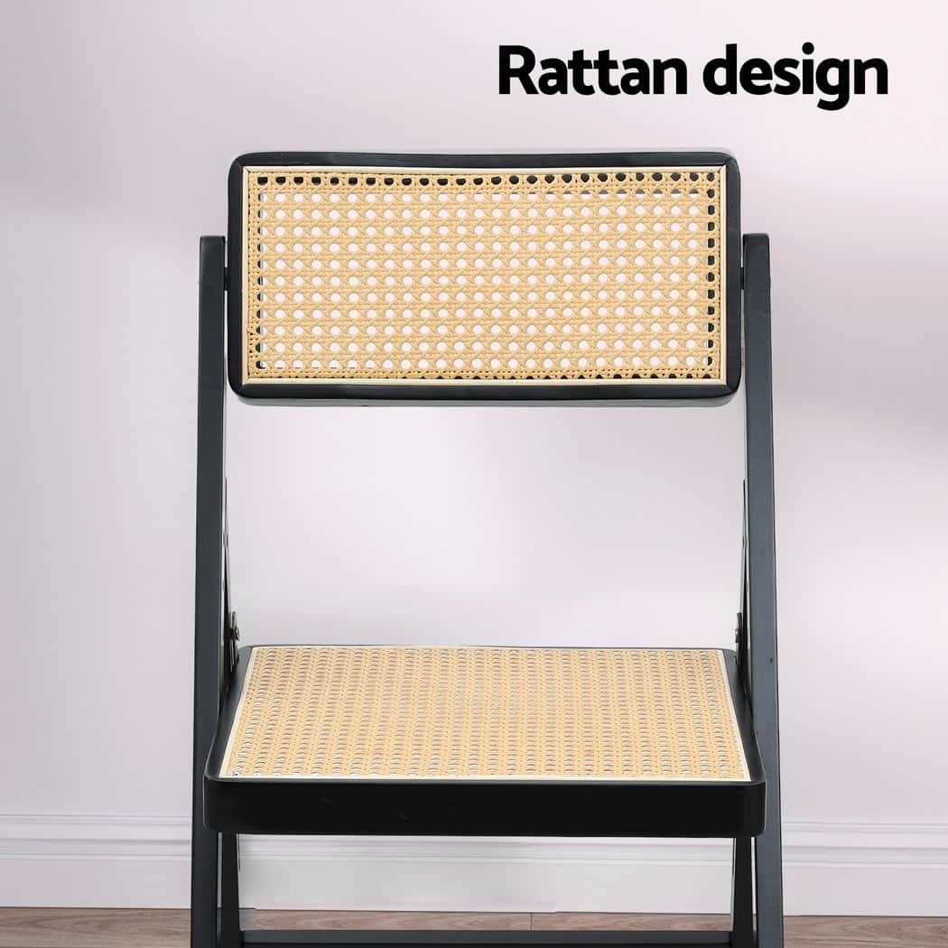 This dining chair combines a stylish rattan-style design with foldable, space-saving functionality. Featuring a comfortable backrest and seat, a sturdy poplar wood frame, safe rounded edges, and easy assembly for convenience