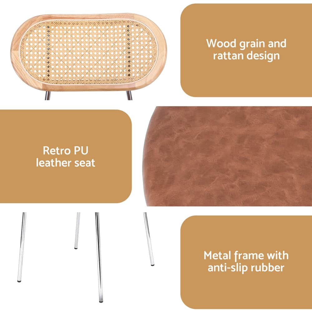Bring a warm, inviting feel and a touch of retro charm to your home with this striking set of dining chairs. These chairs perfectly blend materials, featuring a breathable rattan backrest paired with a rich brown PU leather seat.