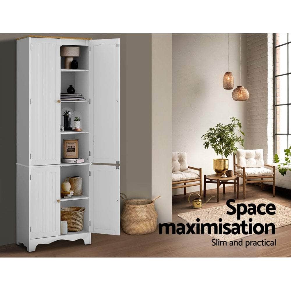 Need more storage space in your kitchen or living room? Our Berne Tall Cupboard from may just be the solution for you. Made of eco-friendly E1 MDF board, finished in a smooth NC paint and topped with a gorgeous wood surface, the cabinet features sturdy construction and six tiers of storage. With four shelves in the top cabinet and two below, the cabinet provides more than ample space for all your essentials. Plus, the doors have magnetic catches for easy and tight closure, as well as elegantly styled door handles. The cabinet can be used as storage in your bathroom, pantry, or bedroom. Mix and match with other pieces in the Berne series for the perfect look!