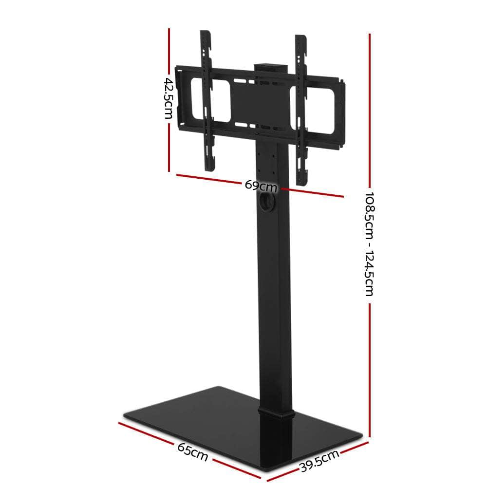 Give your entertainment zone that integrated look with our sleek and stylish TV Floor Stand. With a seamless design that incorporates your TV screen with other multi-media equipment into one ensemble, the TV floor stand is simply exceptional in every way. The black powder-coated TV floor stand can easily hold any TV screen of between 32 inches and 70 inches and comes with flexible mounting for various VESA measurements ranging from 200mm x 200mm to 600mm x 400mm. In other words, no worries with getting your favourite TV screen up there. Plus, the floor stand also has a 350 swivel for alternative vie positions and an adjustable height of between 108cm and 124cm for a comfortable sight line. Not least, the MDF top shelf and tempered glass bass allows you to store your home theatre system or other preferred AV equipment safely and steadily for total entertainment immersion from one spot.