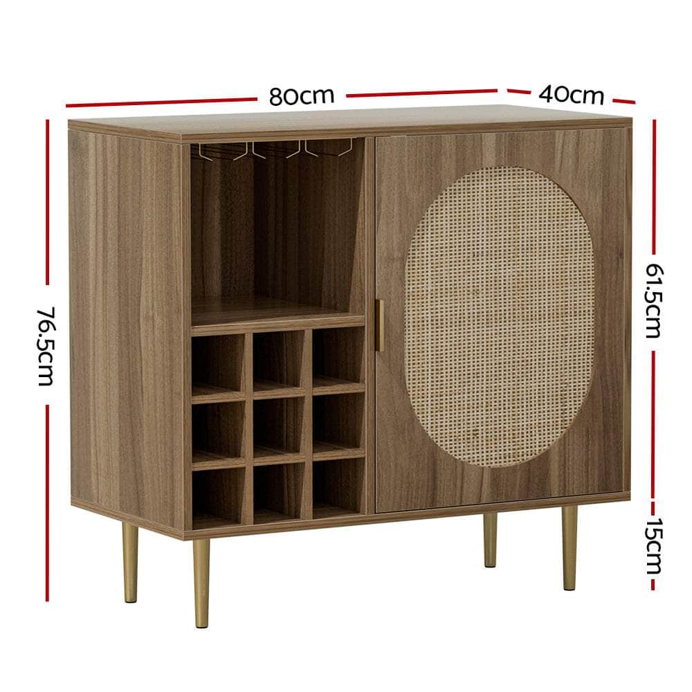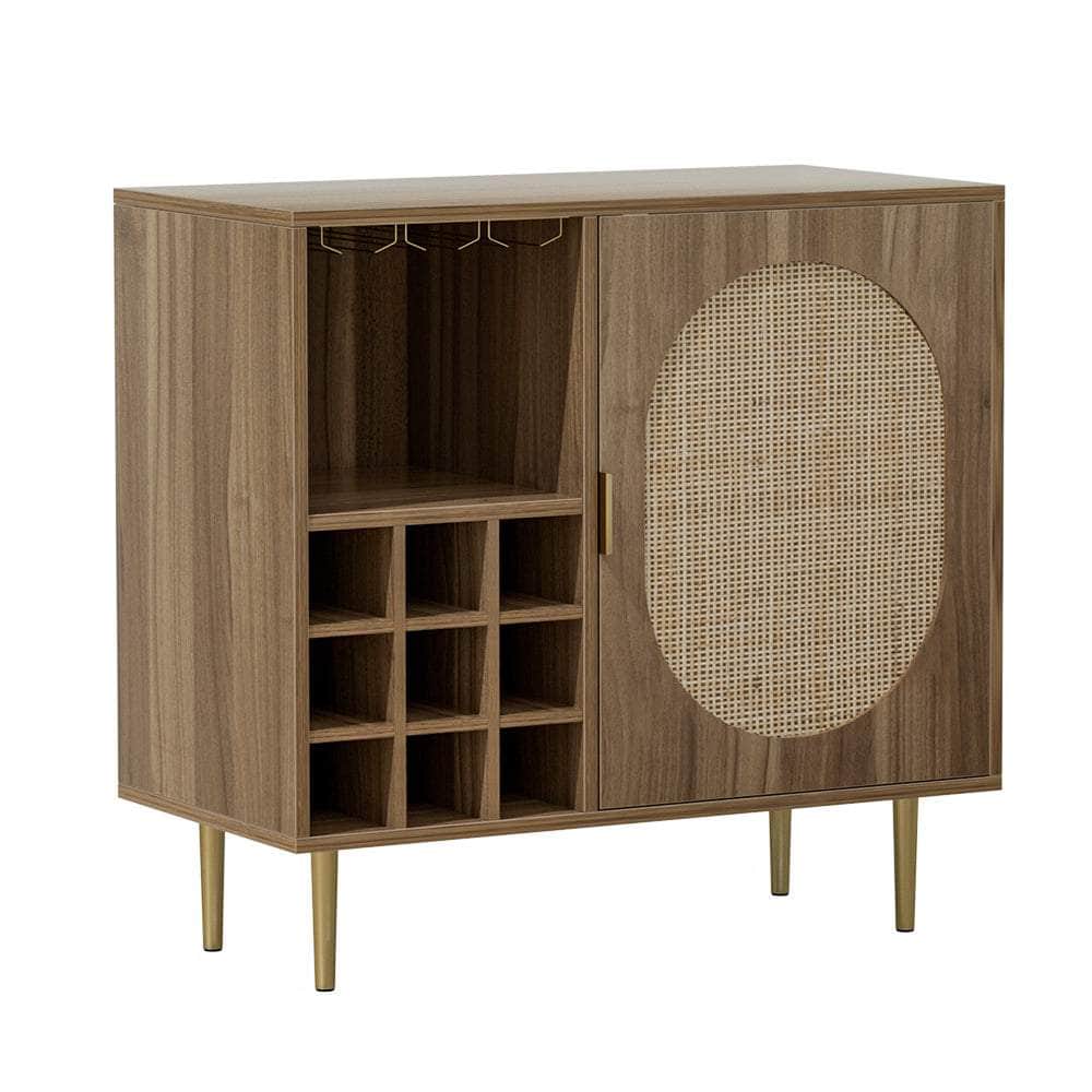 Looking to achieve a coastal bohemian look and feel in a functional furniture piece? Look no further than the Anya Buffet Sideboard. Featuring classic woven rattan doors on an MDF particleboard frame, the sideboard is built for long-lasting function. The smooth surface keeps the piece easy to clean and maintain simply wipe away spills with a damp cloth. Perfect for storing your spirits and wines, the piece comes with a 9-cube wine rack and stemware racks for standard wine glasses. The sleek metal handle allows you to open the magnetic doors and access the generous cupboard with ease. Metal legs with anti-slip foot pads keep the sideboard standing in place and protect your floors. Keep your glassware and other essentials neat and organized with the stylish and functional Anya Buffet Sideboard from .