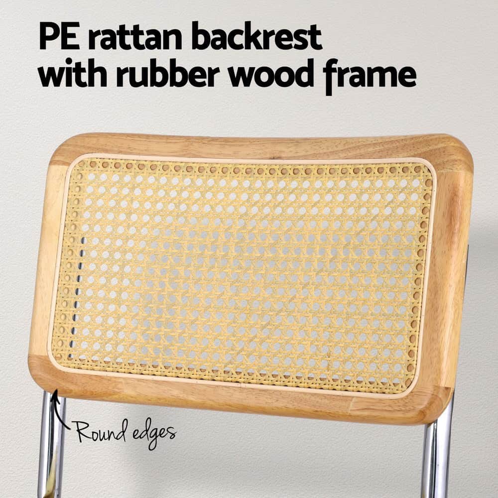 Enhance your dining experience with the Felix Dining Chair Set. Crafted with a cantilevered stainless-steel frame, these chairs offer a sleek and modern look that will complement any dining space. The rounded edges add a touch of elegance, while the rubberwood frame ensures durability and stability. The chairs feature a woven PE rattan backrest, allowing for adequate ventilation throughout the dining experience and providing both comfort and style. The velvet padded seat, filled with high-resilience foam, offers a plush seating experience. With anti-slip feet, these chairs provide stability and prevent any unwanted movement. Additionally, the easy assembly process allows you to enjoy these chairs in no time. Upgrade your dining area with the Felix Dining Chair and indulge in both comfort and sophistication.