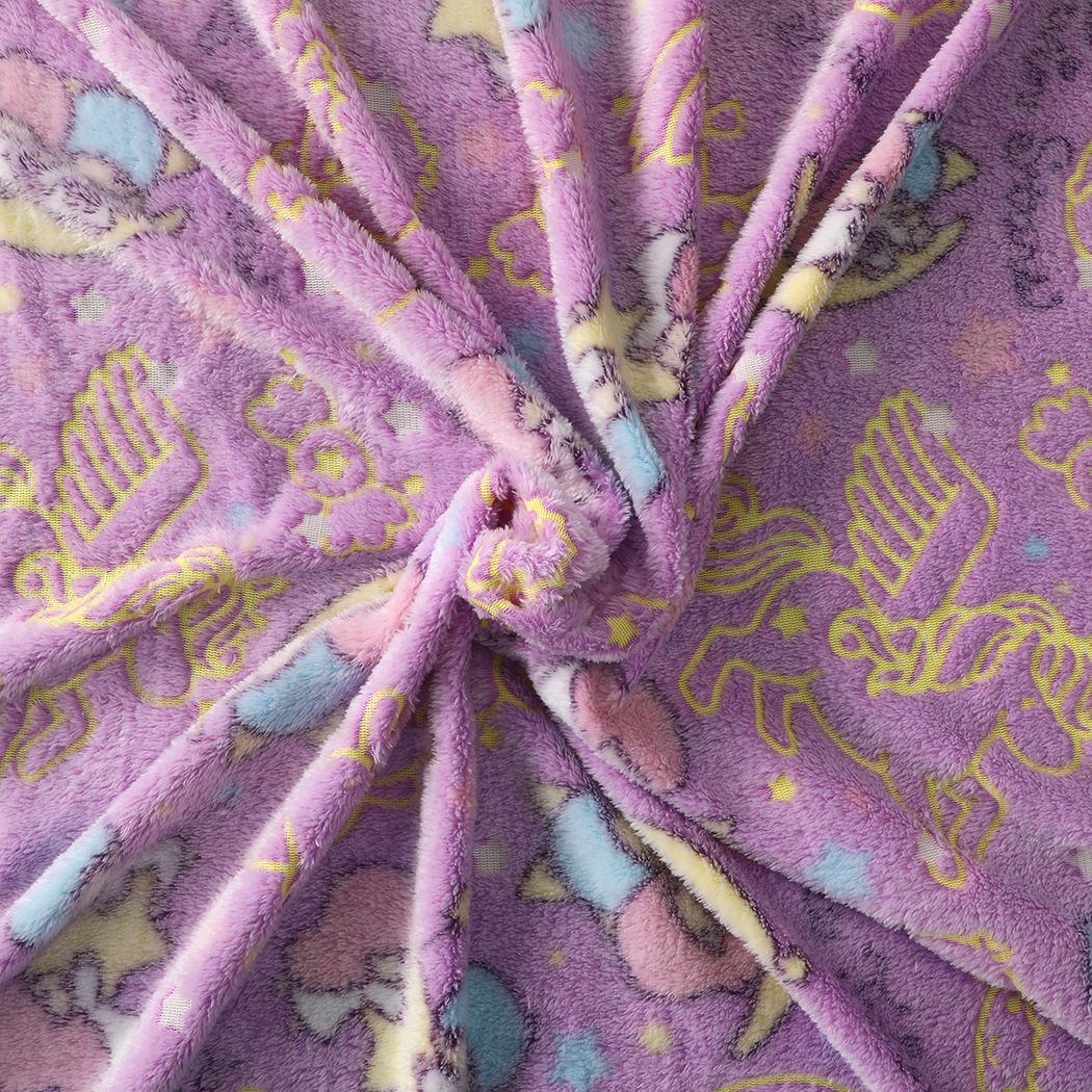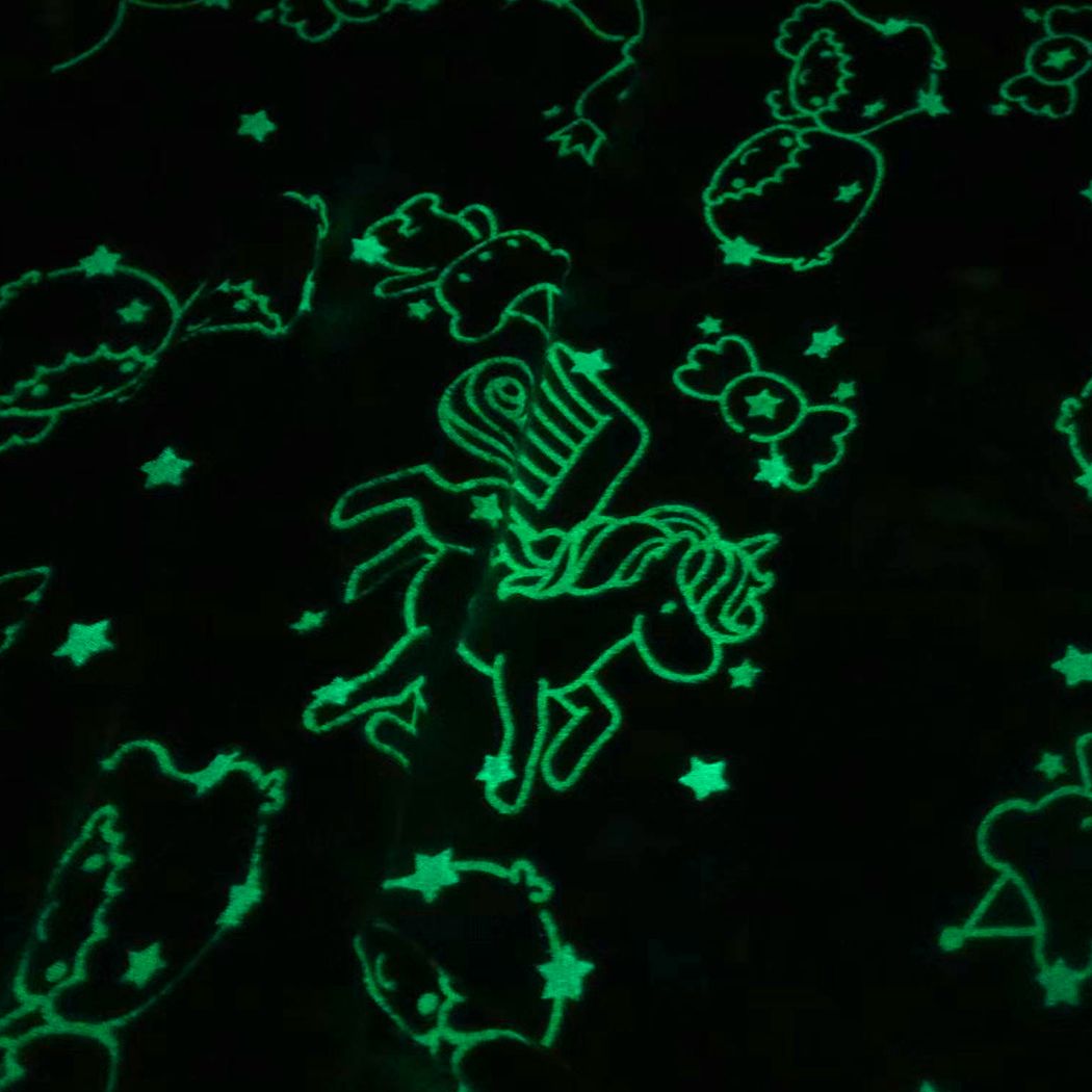 Put your glow-in-the-dark blanket under a light for 10 to 20 minutes. Bask in the warm glow as the light is turned off. Your child will delight in the glowing stars and moons or unicorns and stars.
