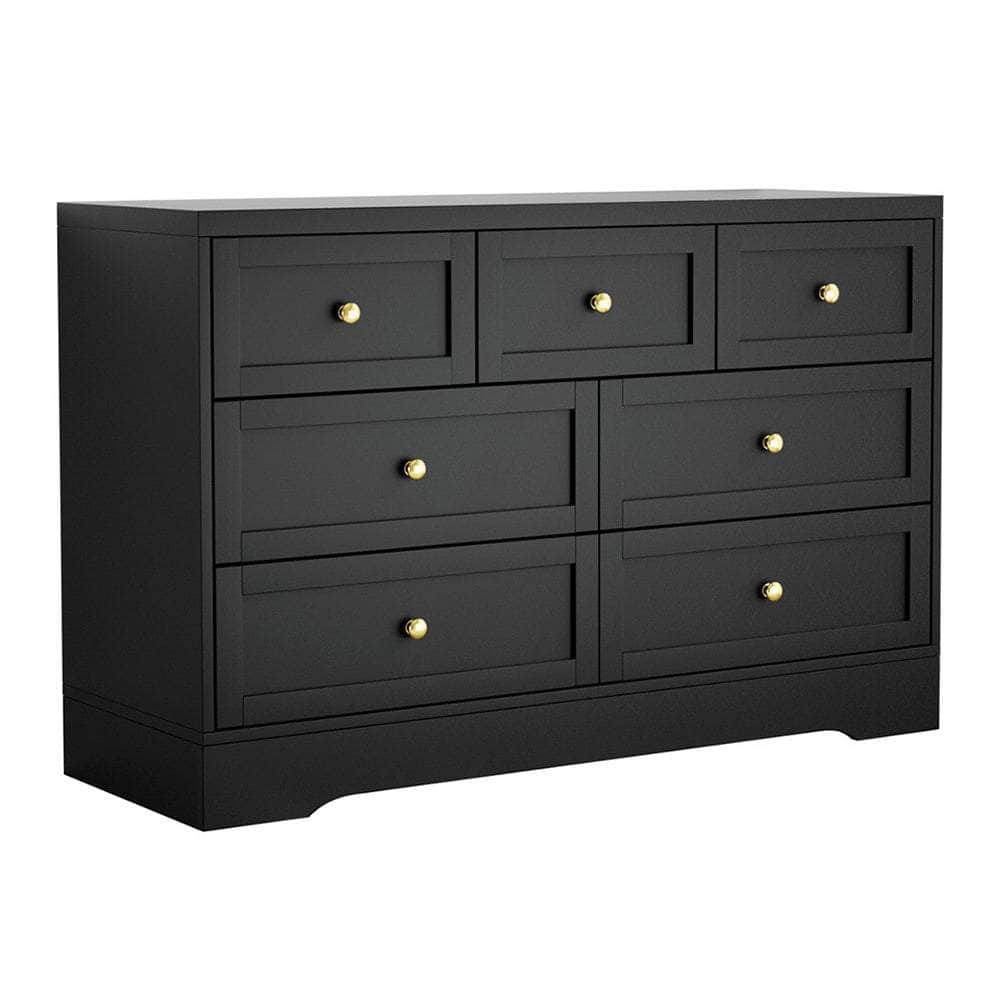 7 Chest of Drawers Dresser Table Black - Sleek Modern Design Perfect for Bedrooms