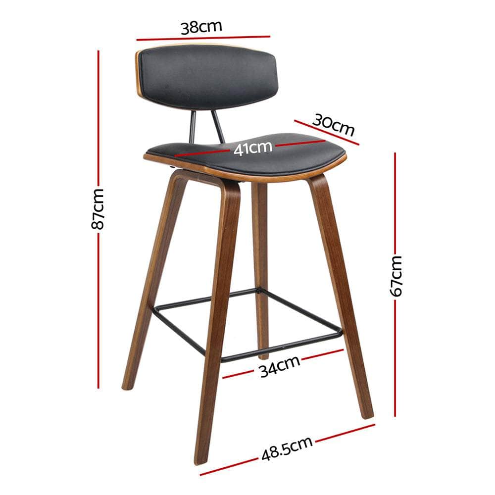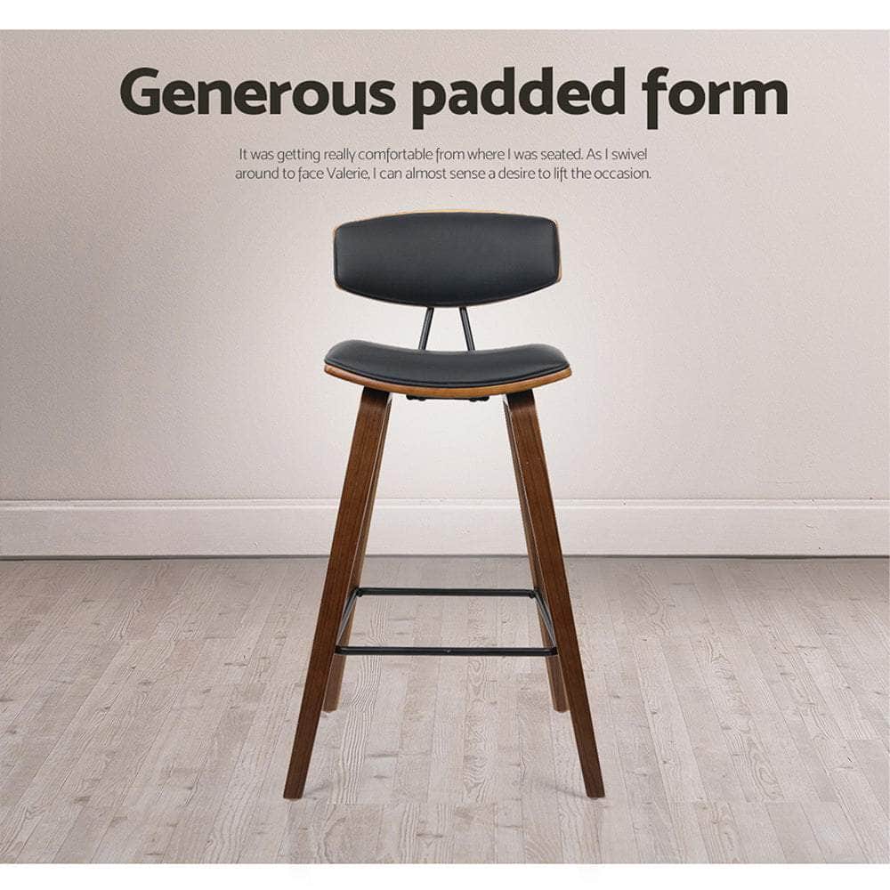 Meticulously crafted with solid wood in a stunning walnut finish for the legs and backrest, the Bentwood Bar Stool features a generous leather seat and backrest that feel comfortably plush and look absolutely classy. The wide backrest also provides appreciable enveloped support while the anti-slip rubber pads on the leg bottoms keep the stool steady and firm even with robust use. Not least, the power coated metal footrest rectangle lets you perch in style, feet up.