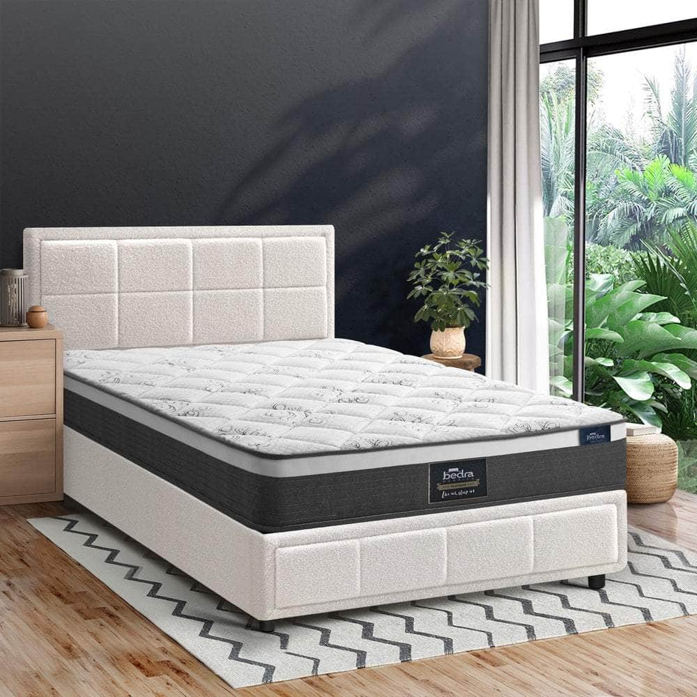 <p>Best of all, the stylish bed frame also includes a comfortable Bedding Pocket Springs mattress to complete the set. This high-quality spring mattress features all the benefits of an independent pocket springs system that provides reinforced edging, motion isolation, anti-disturbance and full body support. Naturally, the highly breathable mattress complies with all required standards and certification and is hygienically safe from top to bottom and everything else in between.</p>