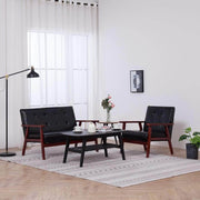 This highly comfortable sofa set has an understated design and will be ideal for chatting, reading, watching TV or just relaxing. The sofa set is upholstered in soft faux leather and padded with foam for added comfort. With a solid wooden frame, the sofa set is stable and durable. Delivery includes an armchair and a 2-seater sofa.