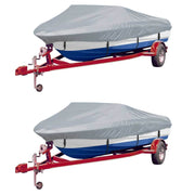 This boat cover can fit most common hull styles and sizes and is most suitable for mooring and storage applications. This cover is made of a durable pigment coated polyester fabric that is both mildew resistant and water repellent. Thanks to the double stitched interlock seams and the reinforced sewn-in elastic cord, this heavy duty boat cover is not only durable but also easy to fix on the boat. Delivery includes 2 boat covers