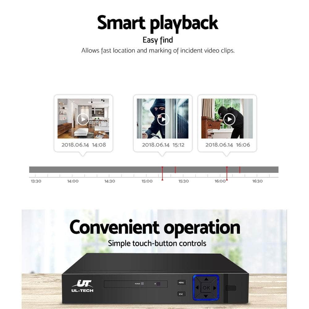 Searching for a smart DVR to complement to your CCTV system? Look no further than the UT UL-Tech 4-channel DVR. An innovative 5-in-1 1080N DVR that is packed with the latest technological features to make close circuit surveillance effective and efficient. The DVR supports a number of camera technologies including AHD, TVI, CVI CVBA and IP camera as well as P2P technology. The unit can be assessed remotely and comes with customisable motion detection for live viewing on your smartphone or desktop computer. It can also be made to send out an email alarm to your devices in the event of unauthorized entry into your home or facility. Better still, all the events can be recorded smoothly and the smart playback makes locating incident clips fast and easy. Behind the unit, there are HDMI, VGA and USB outputs for versatile connectivity and the DVR is also compatible with cloud technology. Not least, all your recorded data is safely protected when power outage occurs. Included with your purchase are all the accessories for a quick set-up with minimum hassle.