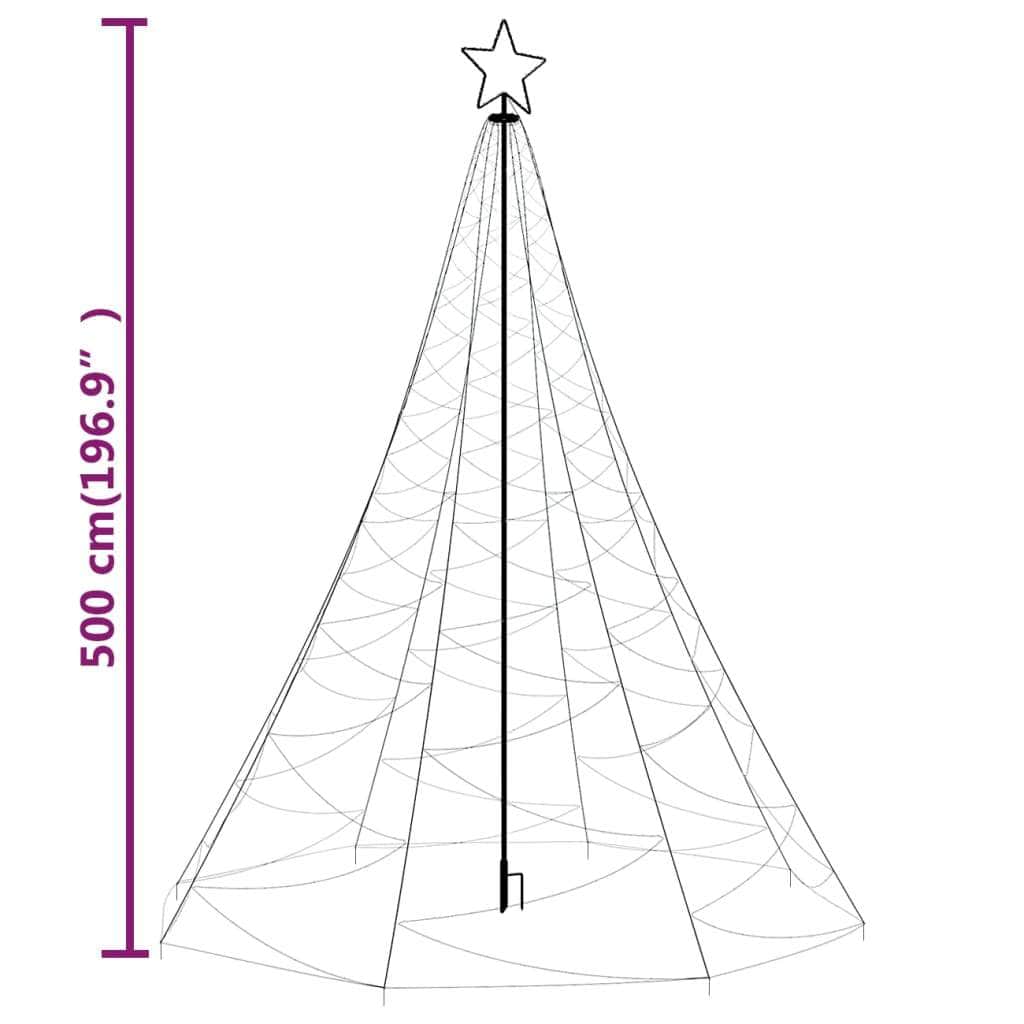 This Christmas tree with spike is specifically designed for decorating your home and creates a magical holiday atmosphere. All-surface LED tree: This all-surface LED Christmas tree with a height of 500 cm and a diameter of 160 cm, is specially designed with 1400 warm white energy-efficient LEDs in a zigzag-shaped formation.Zigzag-shaped LED lights: This Xmas tree features zigzag-shaped LED lights, showing a luxurious and beautiful look. It is meant to be a real eye-catcher and creates a magical holiday atmosphere.Different lighting effects: The Christmas tree light features 8 different lighting effects: a combination of all the effects, slow-glow, twinkle/flash, in wave, chasing/running water, sequential, steady on and slow fade.Compact design: Thanks to the innovative design of this tree, the Christmas decoration can be stored very compact and be brought out for the next holiday's use. Practical spike: The Xmas tree features a spike in the centre post, so that you can insert it into a suitable position on the ground easily to light your home. Note:When using this product, all you need to make sure is that the transformer is placed in a dry environment.
