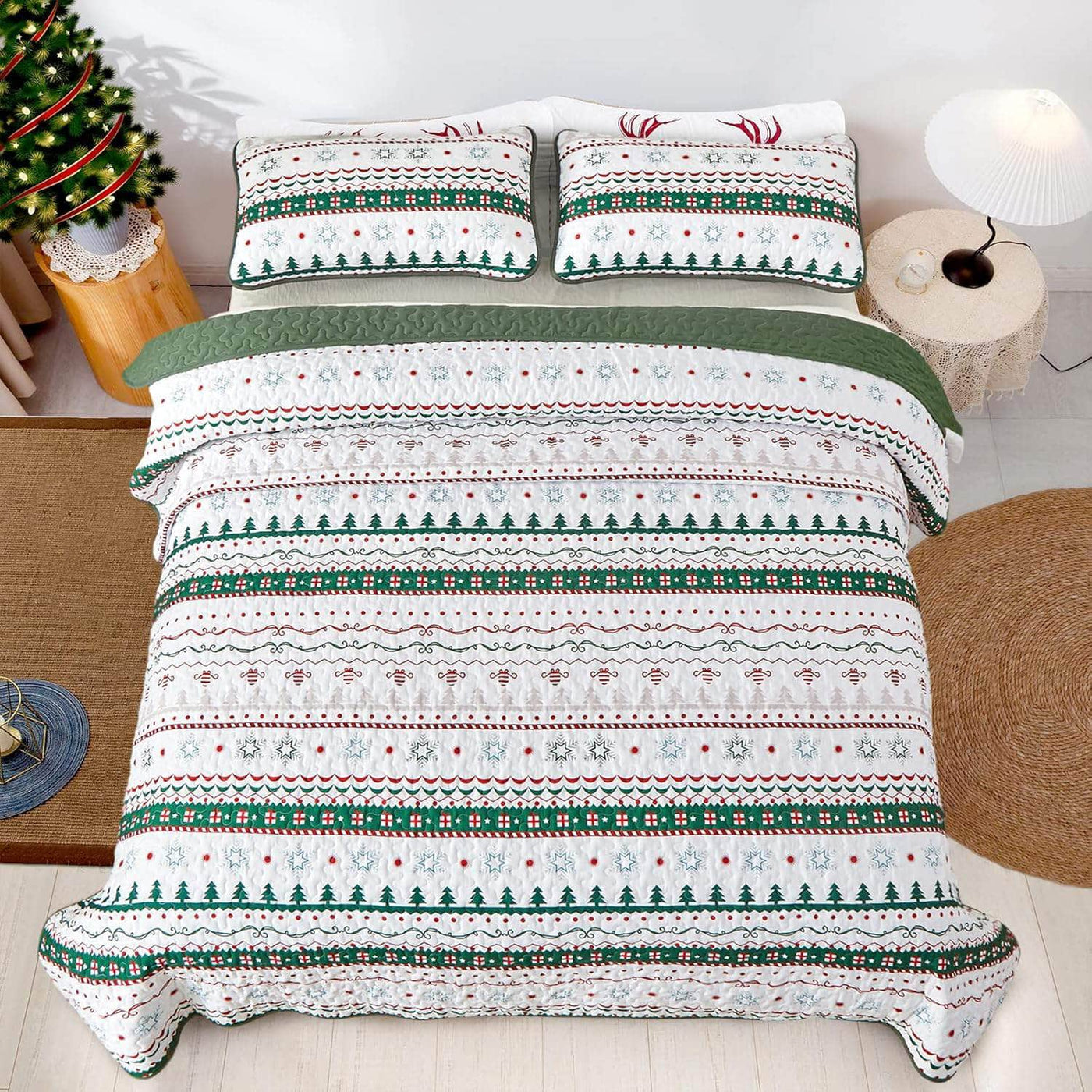 Bring Festive Magic with Our Christmas 3-Piece Quilt Bedspread Set