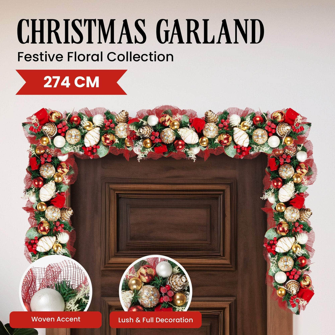 274cm Festive Floral Christmas Garland