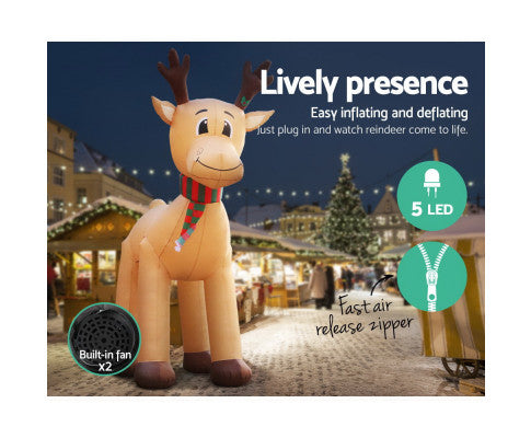 Add festive charm to your home with our Jingle Jolly Christmas Inflatable. Crafted with water-repellent and UV-resistant materials, it is perfect for indoor and outdoor use. The built-in air blower ensures effortless inflation. For quick storage, simply unzip and deflate. Pegs and ropes are also included for secure ground anchoring, bringing you peace of mind. Create a magical holiday display effortlessly with this delightful inflatable centerpiece!