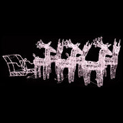 Create a beautiful display in your yard this holiday season with these adorable glowing reindeer and sleigh Christmas decorations. Weather-resistant material: Crafted from acrylic and PVC around a steel frame, this lighted reindeer and sleigh are perfectly weather-resistant over the holiday season.Lighted holiday decoration: It is pre-lit with 240 LED lights, which are energy-efficient and long-lasting.Different lighting effects: The Xmas decoration is designed with 8 different lighting effects: a combination of all the effects, slow-glow, twinkle/flash, in wave, chasing/running water, sequential, steady on and slow fade. Note: If you use the product outdoors, please ensure that the USB connection is plugged indoors in a dry environment.The product has a USB connector, but the certified 5V USB power source is not included