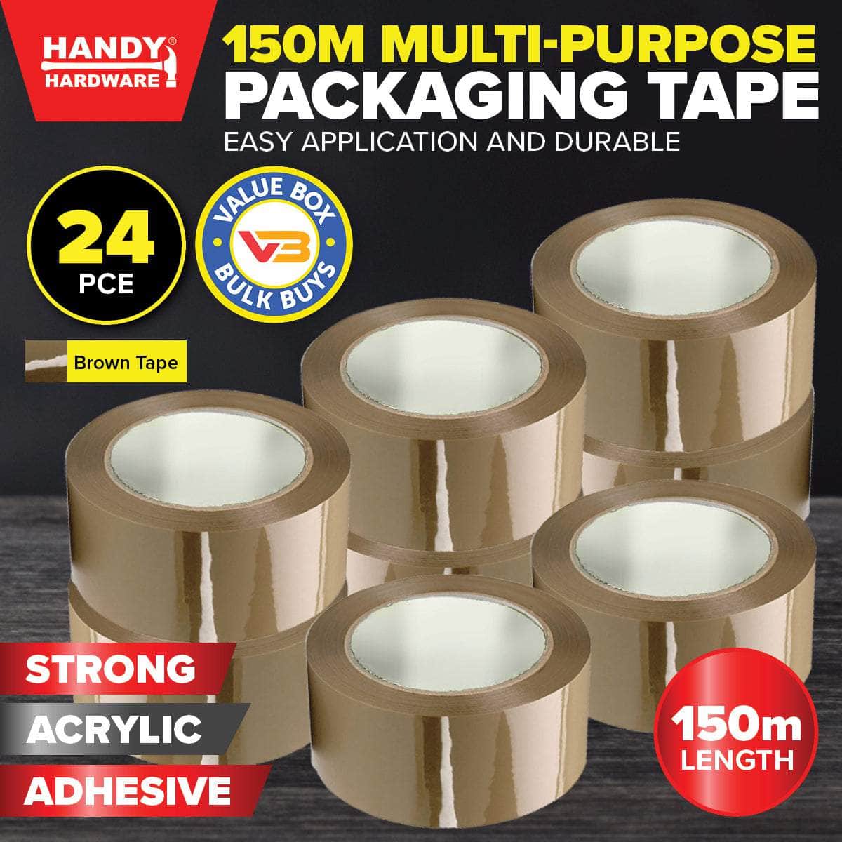 Handy Hardware 24Pce Packaging Tape Brown Multipurpose Extra Wide 150M X 70Mm