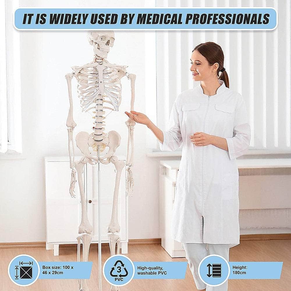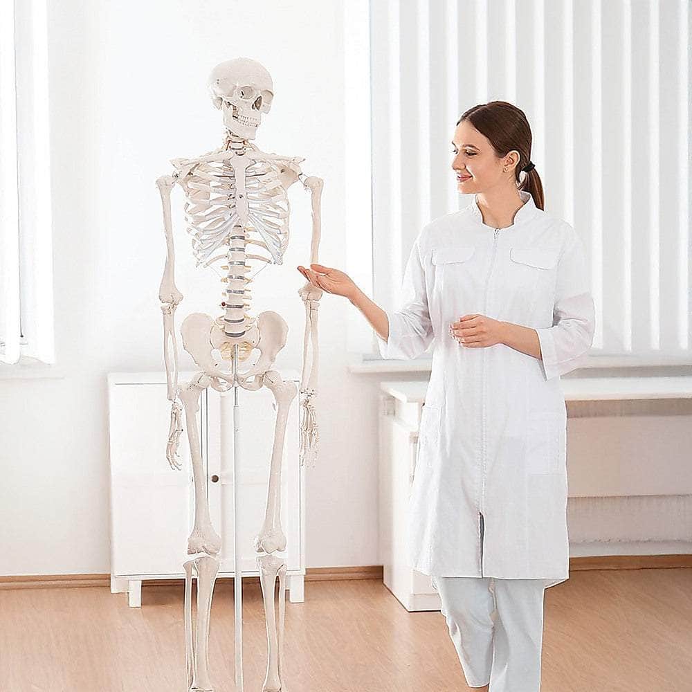 This articulated adult-sized skeleton is perfect for teaching human anatomy. The removable arms and legs enable closer study. The skeleton is authentic enough for use by doctors, artists, students, physios, chiros and other professionals. The bones have a look and feel that is natural and real.