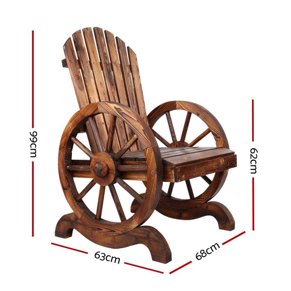 Time to take a seat on the rustic side. Our Gardeon Wagon Wheels Chair definitely looks the part to spice up your garden and backyard with some country soul. Made from imported Canadian Fir wood, the chair is built for sturdy comfort. The attention to details is excellent with finely crafted wagon-wheel armrests, a supportive backrest and exceptional strength and beautiful grains from the Fir wood finish. In fact, the chair can take on a massive weight of up to 220kg. Better still, the Fir wood is weather-resistant, UV-resistant and blessed with a natural resistance to rot and pests. Everything you want in a durable and longlasting garden bench under the great Australian sun and rain. Overall, the chair is given a burnt wood appearance that not only enhances its appearance but also gives it a worn-in style that exudes lots of historic vibes.