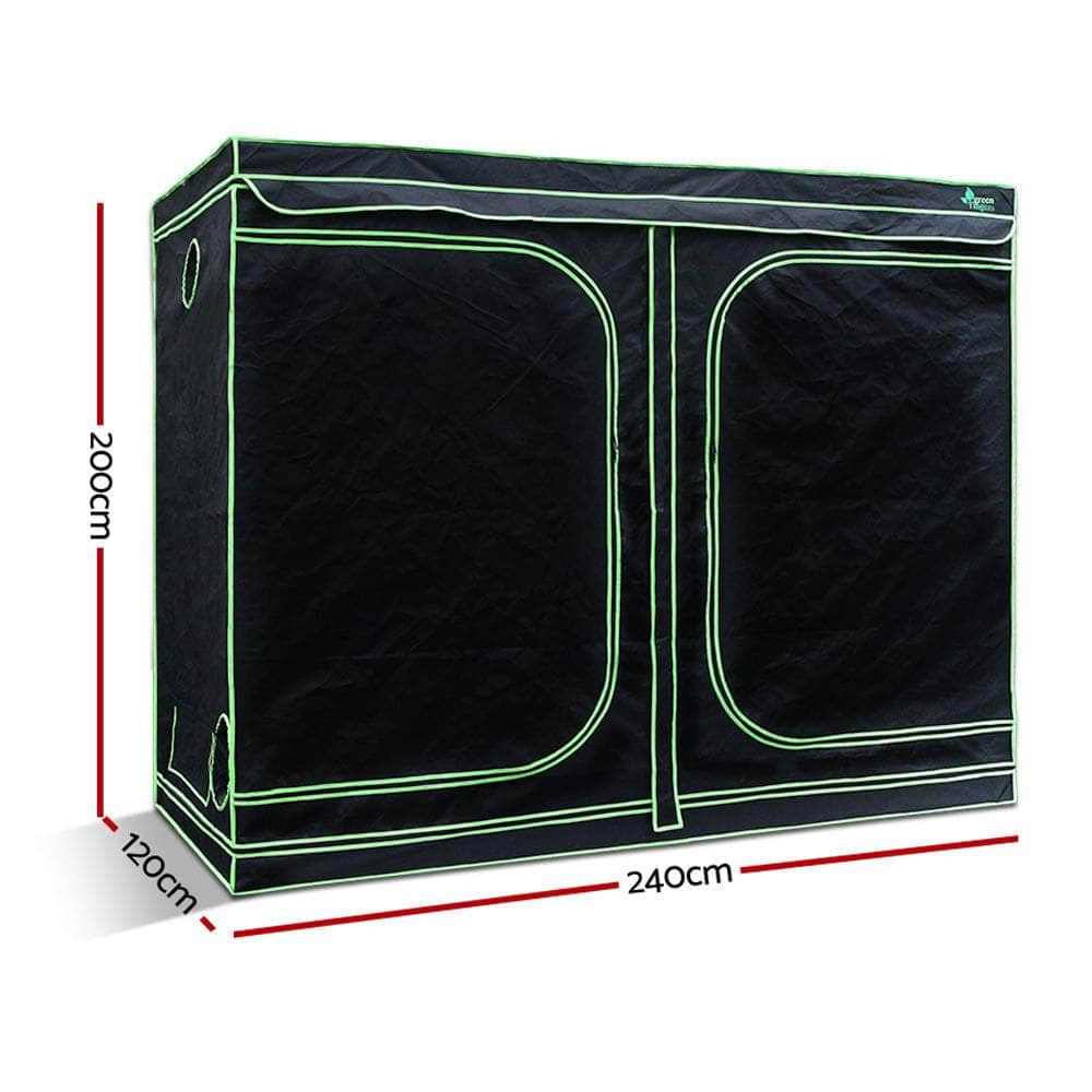 The tent includes fittings and spaces for various sized fans, lights and filters, it