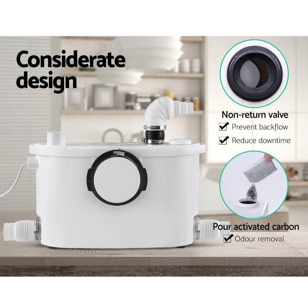 Looking to do some renovations and want to add a bathroom but the existing waste system is too far? With our Macerator Pump that can pump up to 7m vertically and 60m horizontally, you can create a wet area anywhere you want. The 400W pump features four inlets that enable you to connect to four sanitary devices such as your toilet, washbasin, shower and bathtub altogether to complete a bathroom where conventional drainage would be too expensive to consider. It is quiet in operation and fully automatic when activated by flushing. The tough stainless steel blade allows for ultra-fine cutting, ensuring that waste is properly chopped up and able to be discharged through tiny pipework back to the existing sewer connection.