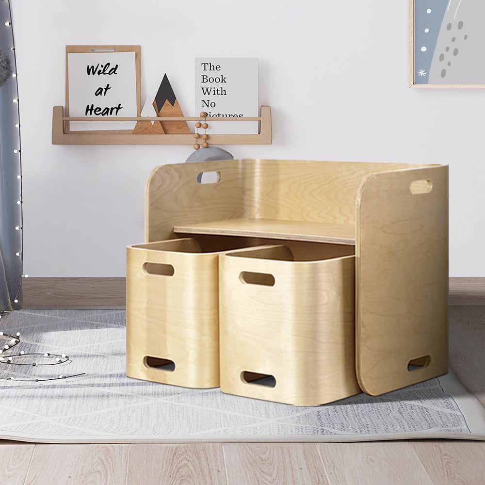 Give your kids they need to study, create and have fun with our compact Kids Table and Chairs Set. Made of birch plywood, the ensemble is strong and sturdy and designed to be child-safe with round corners, easy-grip handles and smooth surfaces. Perfect for reading, writing, art and craft or even having meals, the table has a weight capacity of 50kg. Likewise, the chair can take up to 50kg in weight and are made at just the right height and width for comfortable sitting. Not least, the set is easy to clean and maintain with its non-toxic finish. Its unique design also enable the set to be use in a variety of ways, such as a side table, storage shelf or even as a TV stand.