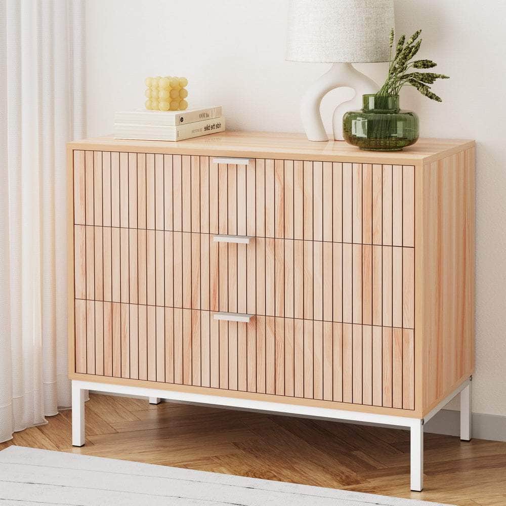 This stylish and functional chest of drawers is the perfect storage solution for any room in your home. Crafted from durable particle board with a sleek melamine finish, it offers three spacious drawers to keep your belongings neatly organised. The sturdy metal legs provide excellent stability, while the sleek metal handles add a touch of modern elegance. Smooth metal runners ensure effortless drawer operation, making it easy to access your stored items.