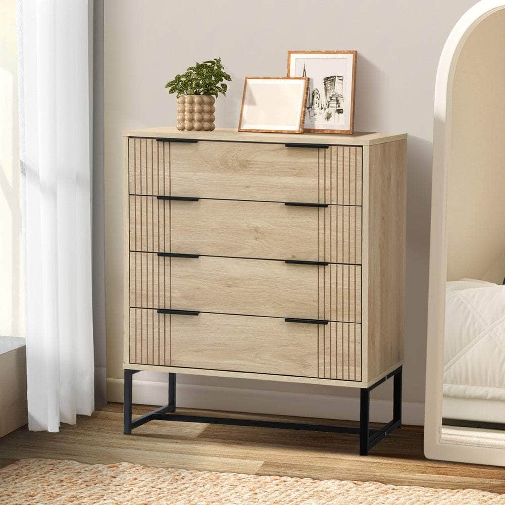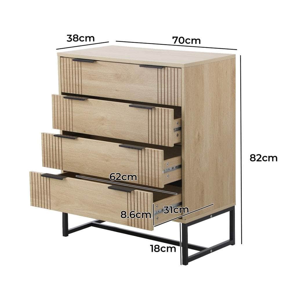 The four drawers provide cavernous storage space while the twin black metal handles on each drawer ensure hassle-free effortless opening and closing, especially when laden with a generous amount of storage items. Plus, you’ll be assisted by the smooth powder-coated metal runners that make using this chest of drawers a breeze and never a chore. Plenty more display space is also found at the top of the chest of drawers that allows this versatile item to be used in a variety of décor ideas throughout your home. Bedroom, study, living room or hallway. The choice is yours to detail.