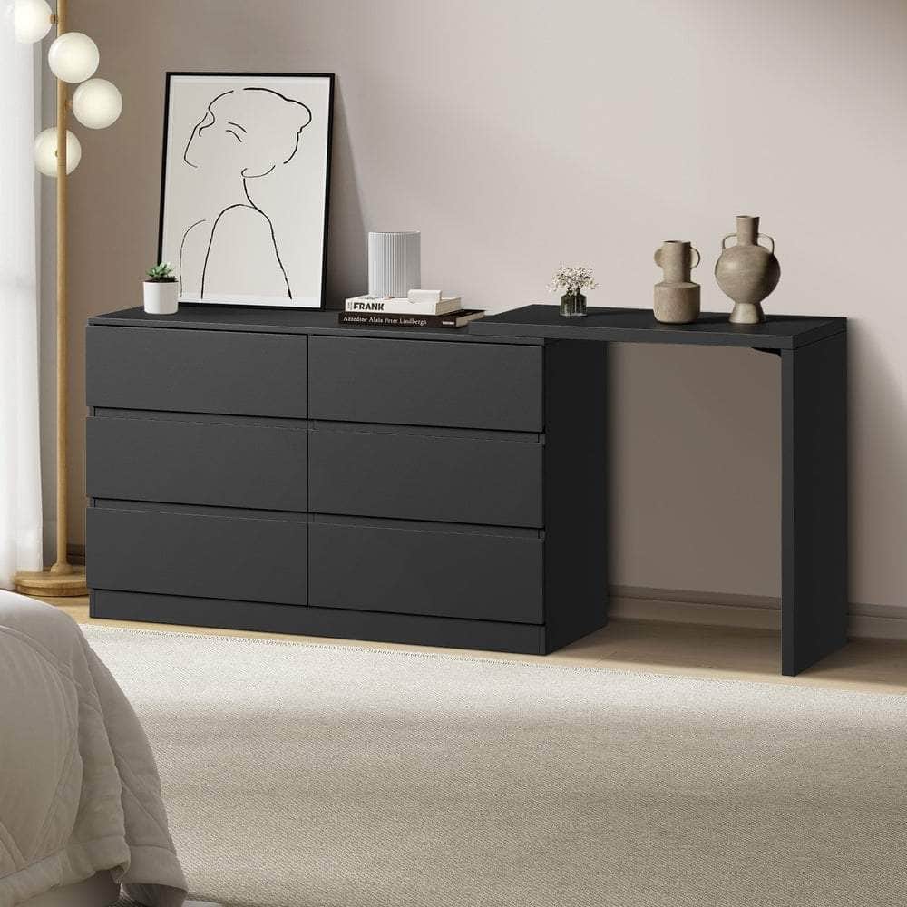 With six sizeable drawers, the handle-free chest of drawers provide cavernous storage space with effortless opening and closing, especially when laden with a generous amount of storage items. Plus, you’ll be assisted by smooth metal runners that make using this chest of drawers a breeze and never a chore.