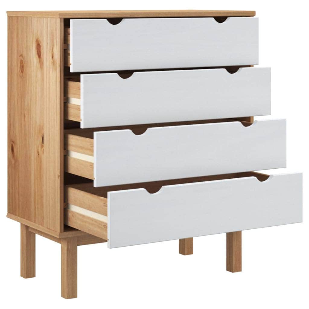 Drawer Cabinet OTTA Brown&White Solid Wood Pine