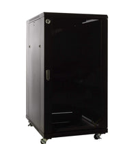 The server rack is supplied fully assembled with solid top and base, plus removable side panels, front glass door all lockable for added security. This network cabinet provides the flexibility for customers who know exactly what they require of their server rack. Possible usage applications include housing small servers, DVR, security equipment, routers, patch panels, switches and rack mount equipment, Telephone Systems and PABX equipment and Network and Communications Equipment.