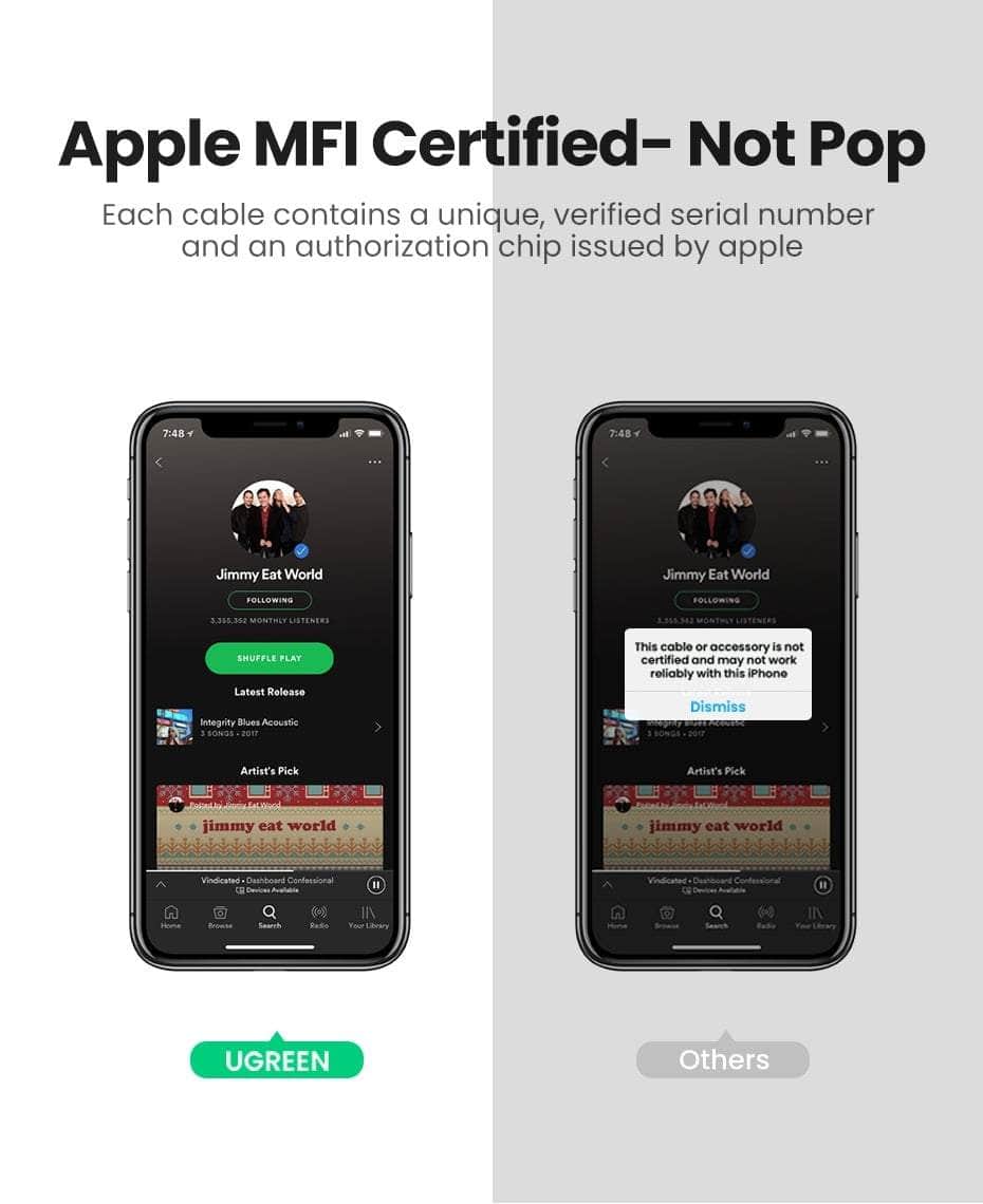 UGREEN 3.5mm iPhone 8-pin adapters are certified by Apple to meet rigid iPhone requirements and ensure completely and securely connect with your Apple devices.