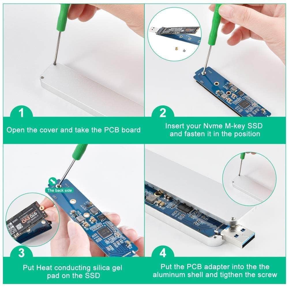 This USB 3.0Gen 2 to M.2 SSD Drive Adapter Can convert an M.2 PCIE NVME SSD into a portable external drive. Supports data transfer rate up to 10Gbps, so you can comfortably enjoy 3D games, 4K videos, HIFI music, Ram photos, etc.